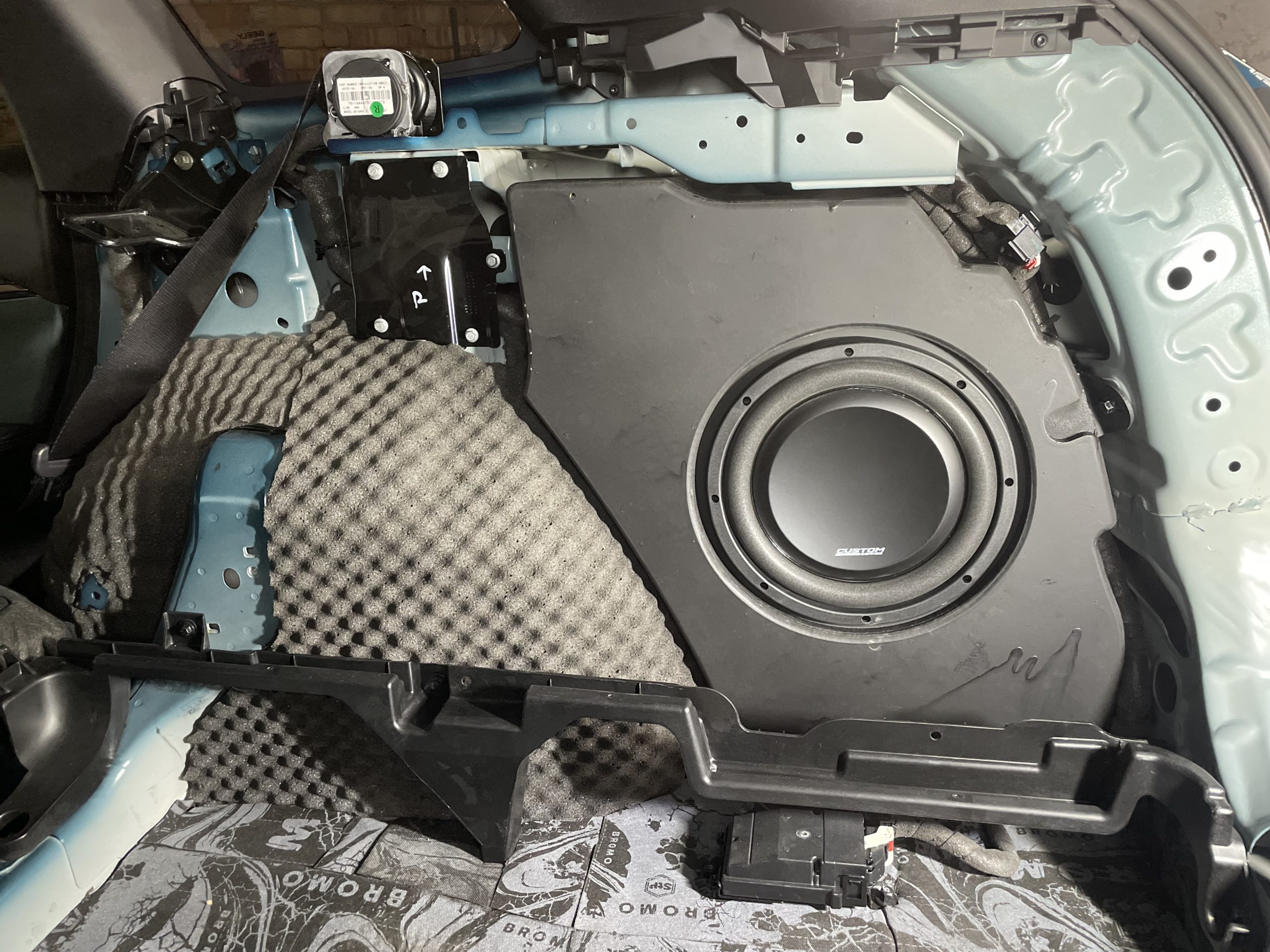 Для установки требуется резать обивку. При выборе сабвуфера учитывайте, что короб стоит под обивкой,